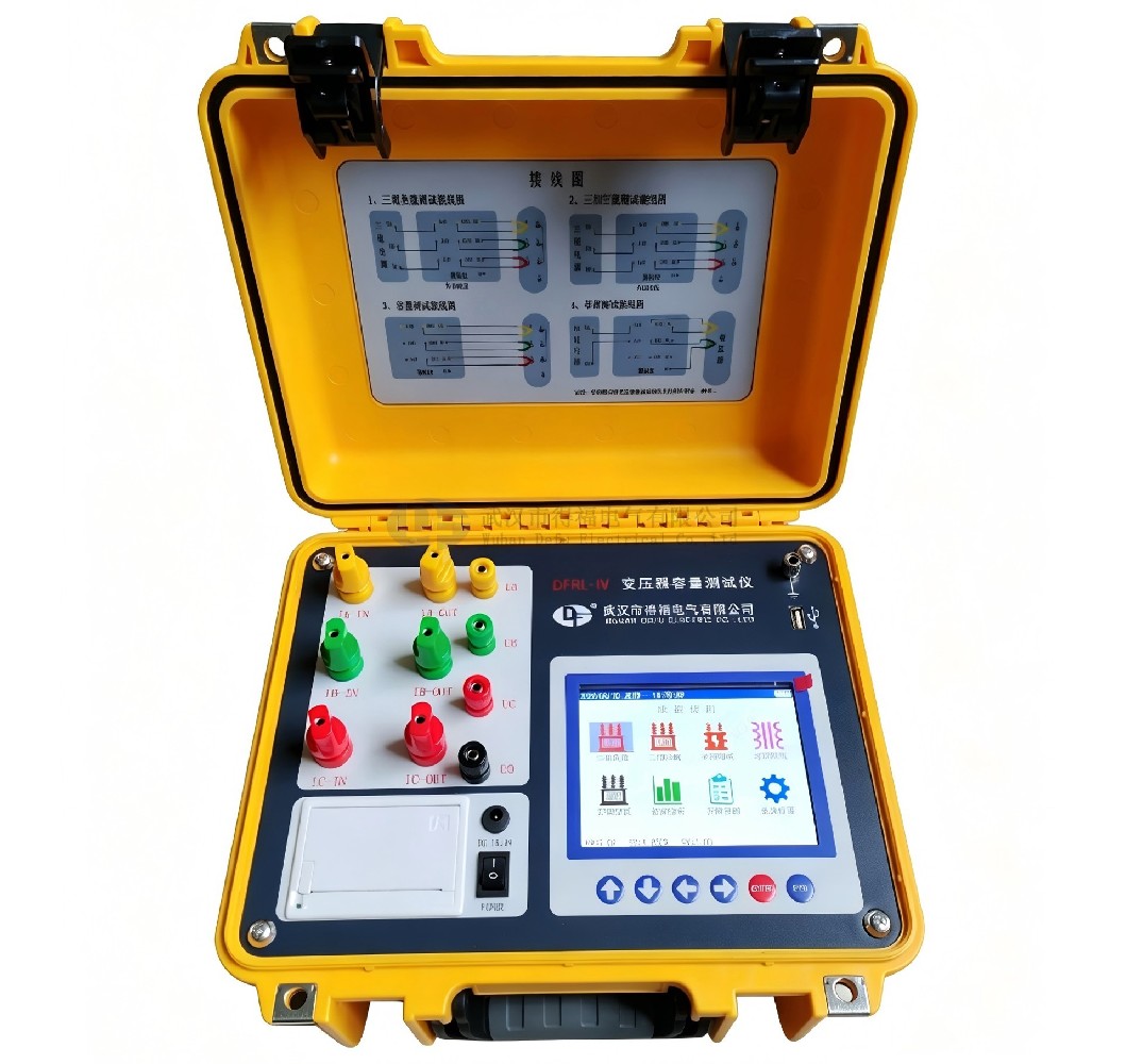 仪器内置可充电锂电池,本身可输出三相正弦波逆变电源,输出电压自动调节,具有软启、软停功能,无需任何外部电源可实现配电变压器容量的测量和型号的判断,同时显示变压器阻抗电压和折算到额定温度、额定电流下的负载损耗。